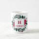 Caneca De Café Red Green Floral Elegante Monograma Nome Natal