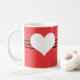 Doce e encantadora mug cardíaca moderna apresentando um fundo vermelho escuro e um coração fofo e borda listrada. Esta caneca gira e gira é perfeita para gostar da sua bebida quente favorita! Personalize com o texto de sua escolha. Clique em "Personalizar" para encontrar opções adicionais de personalização.