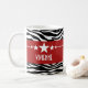 Trendy e moderna Sassy Star Zebra Mug apresentando um fundo de impressão em branco e preto chico e uma borda vermelha ousada adornada com um divertido motivo de estrela. Este design feminino pode ser personalizado com o texto personalizado de sua escolha. Clique em "Personalizar" para encontrar mais opções de personalização.
