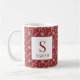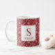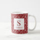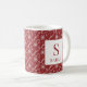 Add a refined touch to your mug collection with this red snowflake swirl design featuring a bold monogram and custom name. The crisp white label showcases your chosen initial and name against a festive red background, making it a stylish and personal gift for the season.