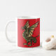Uma caneca mostrando um estilo medieval Wyvern em um fundo vermelho; fazer sua xícara de chá um pouco mais interessante.