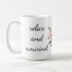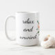 Relaxe e desenrole com esta caneca floral de café. Presente perfeito para o amante do café. O estilo e a cor do texto podem ser alterados.