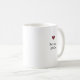 Uma caneca engraçada, com uma máquina de escrever minimalista, texto simples e personalizado, com imagem de coração vermelho. Estas canecas personalizadas são uma ideia excelente para namorado, namorada, marido e esposa.