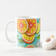Esta caneca clássica apresenta um design cítrico ousado e vibrante com fatias suculentas de laranja, limão e lima ilustradas em um estilo moderno e animado. Contra um fundo azul-turquesa brilhante com acentos em forma de respingos e folhas verdes frescas, a obra de arte cria uma aparência enérgica e refrescante que ilumina instantaneamente qualquer cozinha ou espaço de trabalho. Perfeita para café da manhã, chá ou bebidas noturnas aconchegantes, esta caneca combina praticidade cotidiana com uma estética alegre e atraente. Durável, brilhante e cheia de personalidade, ela traz um toque de cor às rotinas diárias e faz um presente divertido e memorável para amantes de frutas e fãs de designs inspiradores.
