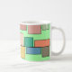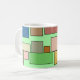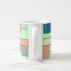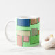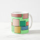 Esta caneca tem um design boho moderno de retângulos ligados a linhas horizontais em vários tamanhos e cores boho.