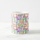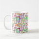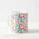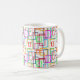 Esta caneca tem um design Bauhaus de retângulos sobrepostos em várias cores.