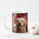 Retriever ouro numa caneca de café com chapéu de Santa.