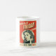Start your morning with a dose of nostalgia in this durable ceramic cup. The wrap-around design features a striking pop art pin-up girl and bold retro black friday lettering. Inspired by 1950s illustration and classic kitsch poster art, the red cream graphics make a bold statement on any office desk or kitchen table. It is the perfect vessel for your coffee while you browse the latest vintage sale or hunt for a best price promotion online.