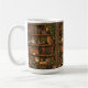 A cozy retro-inspired design featuring a charming bookshelf filled with vintage books, delicate botanical accents, cute woodland animals and a comforting cup of tea or coffee.