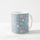 Retro floral pattern. Pink and white flowers on a muted grayish-blue background.