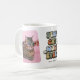 Trate uma dona de gato com esta linda caneca de café com tema de animal de estimação retrô com a frase 'MELHOR MÃE DE GATO DE TODAS' em uma fonte multicolor vintage dos anos 60, flores brancas em negrito, 2 fotos do adorável gatinho e o nome dele. Esta caneca de café personalizada com foto seria o presente perfeito para o dia das mães ou para o aniversário de alguém!