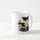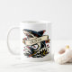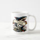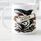 This personalized traditional tattoo-style mug features a fierce Great White shark leaping through cresting waves, complete with a vintage-style parchment banner.