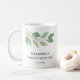Esta reunião de família guarda caneca é decorada com água verde. Facilmente personalizável. Use a Ferramenta Design para alterar o tamanho, o estilo ou a cor do texto. Porque nós criamos a nossa trabalho de arte, você não encontrará esta imagem exata de outros designers. Original Watercolor © Michele Davies.