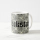 Trendy and hip Rockstar Damask Guitar Mug apresentando uma maldita guitarra embelezada. A imagem de fundo pode ser alterada ou removida completamente. Personalize esta caneca com um nome ou outro texto para dar um toque pessoal a este design legal e estranho.