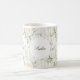 Caneca De Café Romântico Bege Rosas Brancas Listras Florais