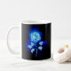 Rosa abstrata florescendo da chama azul sobre fundo preto. Rosa de fogo.