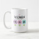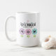 Eleve o seu presente do Dia das Mães com esta linda caneca de café floral. Adornada com flores rosa e azuis que escrevem a palavra "MAMÃE" e tipografia feita à mão que diz "A vida é bela porque você está nela", esta caneca irá adicionar um toque feminino à rotina matinal da sua mãe. O que torna esta caneca única são os espaços reservados para texto personalizáveis que permitem personalizá-la com seu próprio sentimento e iniciais para criar um monograma, se preferir. Crie um presente significativo para expressar seu amor e apreço por sua mãe.
