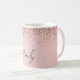 Rosa Dourado Feminino - Bege Rosa Brilho Lantejoulas Metal Escovado Monograma Nome e Inicial Xícara de Café ou Caneca. Isso torna o presente perfeito para os 16 anos, casamento, chá de noiva, aniversário, chá de bebê ou despedida de solteira para alguém que ama luxo e estilos glamorosos e chiques.