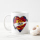 Personalize a caneca de café da tatuagem da mãe, com o coração lacrado do céu noturno, cheio de uma rosa vermelha amarela e uma fita com a palavra MOM no centro, tudo no estilo clássico da tatuagem. Você pode mudar o texto para qualquer mãe ou um nome na caneca. Uma caneca de café excelente para dar como presente dia de as mães para a mãe a sua vida.