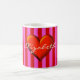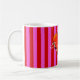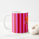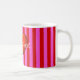 Caneca De Café Rosa Quente, Stripes Vermelhas, Monograma Metálico