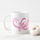 Esta bela design de espirais e flores tropicais foi criada em tons de rosa em homenagem à consciência do cancer.