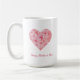 Personalize minha caneca de água pintada à mão única para um doce presente de Dia de as mães. Eu me diverti pintando estes rosas cor-de-rosa e cor de pêssego soltos em forma de coração. Não são perfeitos, mas são amados, tal como nós. Um guião simples e minimalista diz, "Dia de as mães feliz". Adicione o nome da sua mãe para personalizar esta fofinha tipografia chique rosa. Você também pode adicionar uma mensagem pessoal ao personalizar o texto que diz, "Nós te amamos mãe" Eu espero que você goste dessa simples, moderna e moderna caneca de café Dia de as mães. Compartilhe esta caneca com a sua mãe, a sua mãe, a sua avó, ou a sua figura de mãe para um presente de Dia de as mães personalizado. Este design de aquarela original fofo fará qualquer um sorrir.