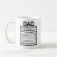 Este design é como o rótulo nutricional dos produtos, mas este tem algumas porcentagens realmente bonitas para pais como carinho, e muitas palavras positivas para nossos pais. Faz um presente de excelente para o Natal, Aniversários, ou qualquer evento que você queira impressionar o pai. Ele vai adorar bebendo desta caneca, sabendo o quanto você o ama. Também tem Super Pai na frente.