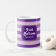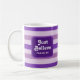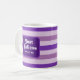 Esta caneca bonita apresenta listras roxas juntamente com um verso Bíblia do Evangelho de Mark.
