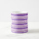 Esta caneca bonita apresenta listras roxas e brancas e uma inicial personalizável em frente e atrás.