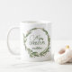 Rúscula de Natal russa Wreath Personalizada Coffee Mug - A nossa caneca de Natal festiva apresenta uma coroa verde desenhada pela mão enfeitada com bagas. Bonito escrita e tipografia de estilo escrita à mão diz "Feliz Natal" e é personalizada com o seu nome. Faz um belo presente. Por que não pegar dois e guardar um para você?