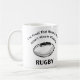 Caneca Clássica De Rugby Proof. Arte original de rugby de Roger Smith. Dê uma caneca engraçada a alguém especial. Disponível em 11 ou 15 onças. Dimensões: 11 onças: 3,8" h x 3,2" de diâmetro 15 onças: 4,5" de altura x 3,4" de diâmetro, em segurança para micro-ondas e máquinas de lavar loiça. Forte construção cerâmica. Atende aos requisitos de FDA para comida e bebida.