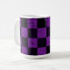 This coffee mug features a pattern of rustic checks, checkers that are distressed in purple and black.