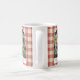 Caneca de Natal russa apresentando um design elegante com sua foto em forma de arco que adiciona um toque moderno ao estilo de vintage do padrão de gingham. Abaixo da sua foto está a saudação editável "Feliz Natal" junto com os seus nomes.