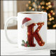 Caneca De Café Rustic Wood Christmas Letter K String Lights
