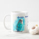 Aqui está uma linda caneca de café para o amante de pássaros. Se você tem amigos ou família que amam o periquito, este é o presente para eles. Um periquito azul giro sobre fundo branco com as palavras " orçado, periquito, ou bugégaris, eu amo meus pássaros"