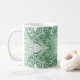 Esta mandala branca senta-se sobre um fundo verde-cinza. As cores são naturais e relaxantes. Parte da coleção Howlsplann Mandala.