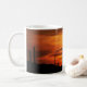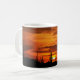 A design de caneca cênnica mostra fotografia de cactos silhouettes contra um céu laranja ao pôr do sol no deserto da Arizona perto do Monumento Nacional de Saguaro.