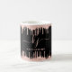 Girly, Elegante, Sylish Blush Rosa Glitter Dourado Drips 2 Monograma Script personalizado nome personalizado mug monograma. Apresentando um moderno falso luxo, cor-de-rosa rosa rosa rosa-rosa, um quadro de gotejamento dourado, uma grande fonte de script monograma com letras duplas com pestanas (iniciais de tamanho grande) e um nome de fonte serif em cor-de-rosa em fundo preto. É fácil personalizá-lo. presente feminino excelente para namorada, mãe, aniversário, casamento, doce chá de panela de 16 festas de aniversário e chás de fraldas, negócios, escritório doméstico, trabalho profissional e para qualquer pessoa que goste de coisas brilhantes bonito e glamourosas.