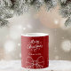 Fundo vermelho, texto branco e arcos Celebram a temporada com nossa caneca de Natal feliz moderna Personalize e adicione seu nome.