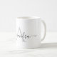 Monograma Elegante preto-e-branco Nome de Script com Letra e Coffee Inicial. A caneca é o presente perfeito para alguém que ama cores modernas e na moda para um aniversário, casamento, Natal, chá de panela ou presente de ocasião especial. Entre em contato com o designer para obter itens correspondentes.