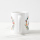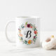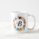 A caneca de café personalizada apresenta um monograma de script inicial enquadrado por um elegante design de coroa floral estilo boho com lindas flores de aquarela de queda, incluindo rosas, dahlias, flores de peônia e verde, numa bela paleta de outono de vermelho-lenhoso, amarelo-ouro, cor-de-pêssego, rosa-pincel e tons de verde. Personalize com um primeiro nome inicial.