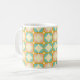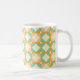 Seamless retro pattern with rounded squares in peach, teal, and cream hues, outlined in orange. Mid-century modern style, conveying a vintage, playful tone.