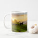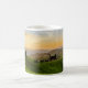 Uma caneca engraçada e balbuciosa, com famílias de gatos caminhando por uma paisagem de colina no pôr do sol. Bonito se você ama caminhar e gosta de gatos:-)