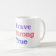 Seja corajoso, seja forte, seja verdadeiro - citação motivacional em preto moderno, azul, vermelho em fundo branco
