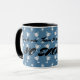 Esta caneca é sobre ganhar. Você tem que treinar o duro; você tem que querer. O texto envolvente é: "Treinar para vencer" e "NÃO EXCUSSE" a preto. Ou você pode digitar nas caixas para mudar isso para sua própria citação motivacional, ou um nome, por exemplo. O fundo é azul a gasolina, com um padrão de troféus e estrelas esportivos de cor prateada espalhados.