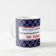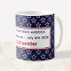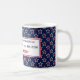 Ideal for end of school gift for coach, teacher, school nurse. Stylish red stars inside white outlined stars on navy blue background decorate this 11oz. classic ceramic mug. Navy blue 'Happy 250th Birthday America, Semiquincentennial • July 4th 2026' and red name are framed with red and blue borders. Available in several styles, and for those who love a bigger cup, a 15oz option is included.