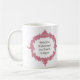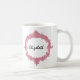 Esta caneca com seu quadro ornamentado cor-de-rosa e um ponto para pôr o nome da sua dama de honra sobre um lado e o sentimento sobre o outro (este diz como um exemplo: a dama de honra e o amigo impressionantes de Alyssa) fazem uma lembrança doce do casamento para suas damas de honra. Personalize com nome de cada dama de honra, e adicione seus nome e sentimento no outro lado!