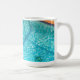 Há uma sereia na piscina de natação, juntamente com algumas outras criaturas marinhas nesta caneca clássica. Esta fotografia original de ZoeSPEAK é uma vista de cima de uma piscina azul aqua revestida com azulejo azul marinho e terracota, e uma grade de aço curvado. A luz do sol da tarde joga sombras na água espumante. A sereia está feliz.