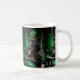 Caneca De Café Shepherd belga dirigindo Ruas de bicicleta. Dia de