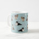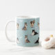 Shetland Sheepdog num design de padrão repetido num fundo azul